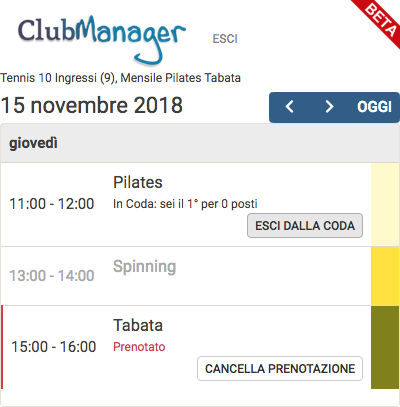 Se il cliente è in regola può vedere tutti i corsi disponibili e prenotarsi a quelli inclusi nei suoi abbonamenti